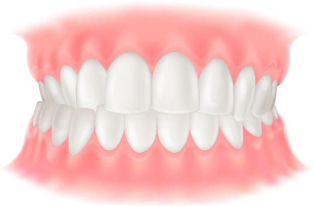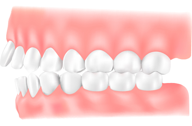 上の歯が下の歯に深く被ってしまっている状態です。このため顔が短く見えることがあります。上下の歯が過剰に接触し、歯を傷つけてしまうこともあります。