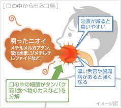 1.口の中の細菌がタンパク質を分解して臭いが発生